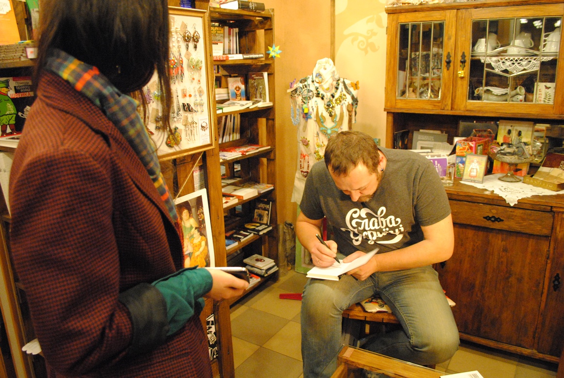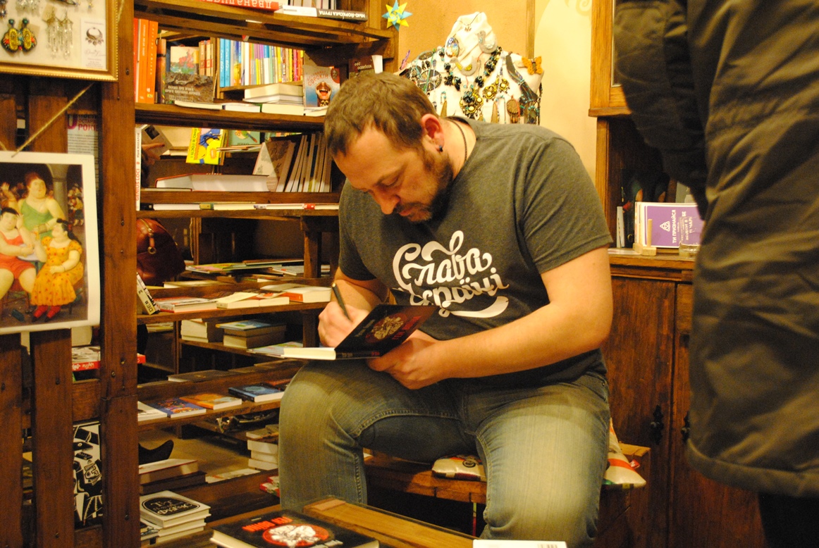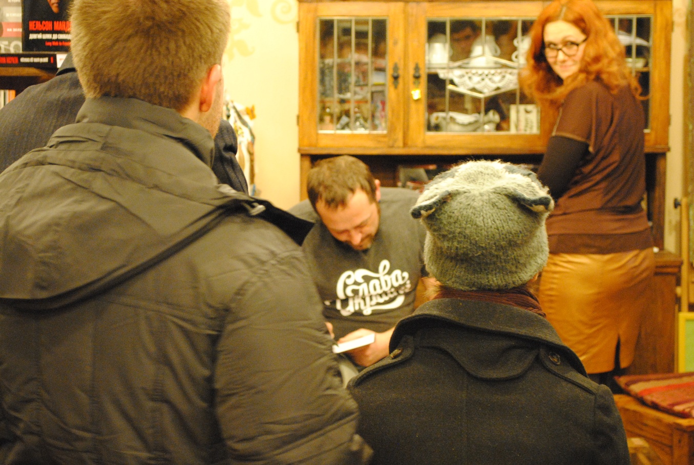 Фото:Ольга Щербина. Презентація книги Руслана Горового «Ген воїна» в галереї-книгарні «Чорна ящірка» (Дніпропетровськ)![]() |