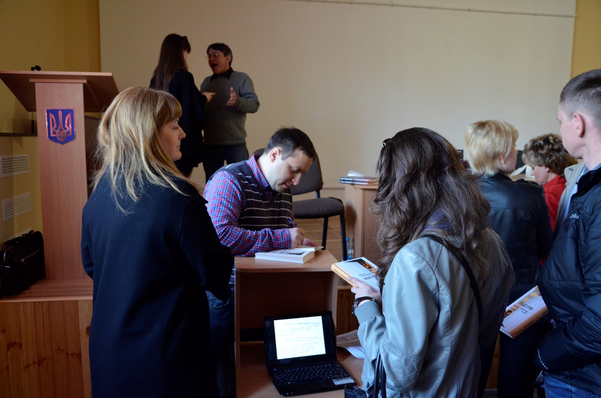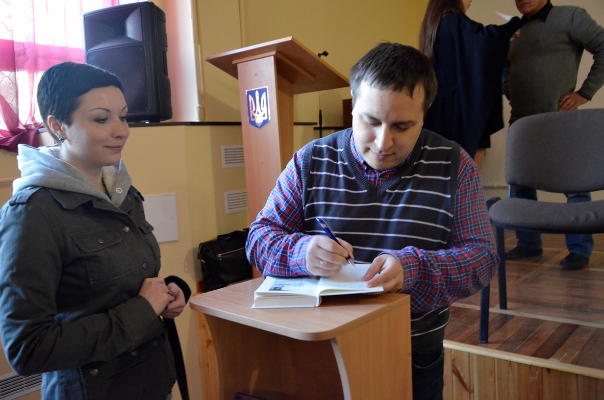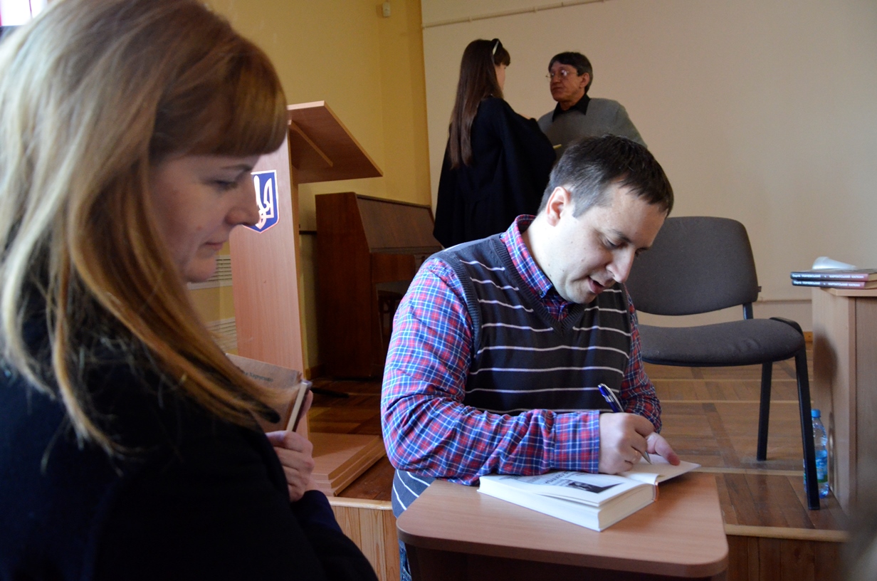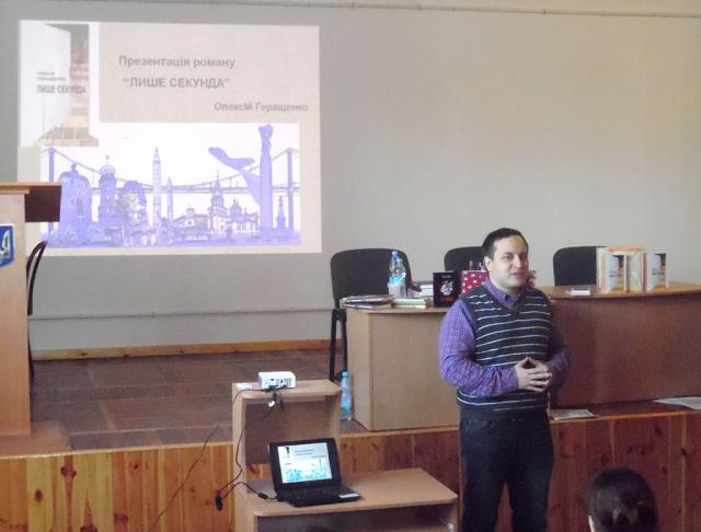 На запрошення Вільний університет – Житомир засновник і керівник видавництва прочитав лекцію «Не-літературний путівник українською літературою сучасності», а Олексій Геращенко та Ксенія Мацкевич презентували книжкову новинку — «Лише секунда»![]() |