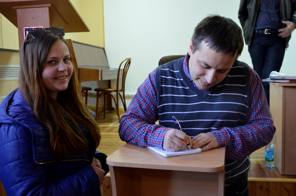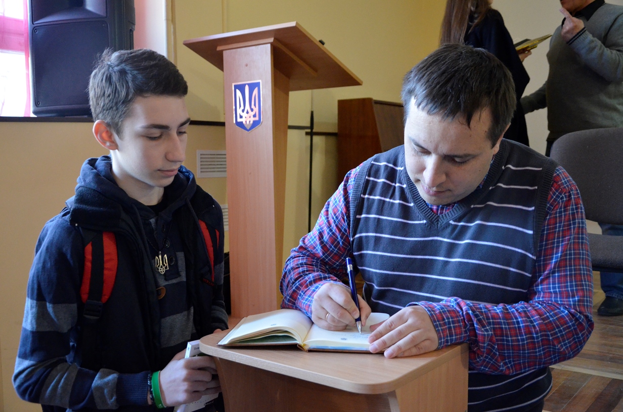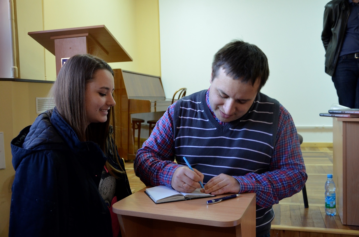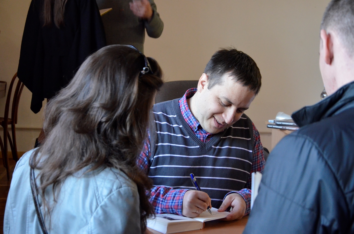 На запрошення Вільний університет – Житомир засновник і керівник видавництва прочитав лекцію «Не-літературний путівник українською літературою сучасності», а Олексій Геращенко та Ксенія Мацкевич презентували книжкову новинку — «Лише секунда»![]() |