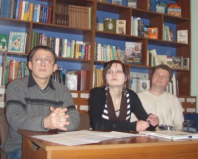 учасники Львівської презентації (зліва направо) Петро Мацкевич (агенція MSBrand Corporation), Тетяна Винокурова-Садиченко, Юрій Сокирка (виконавчий директор видавництва «Кальварія»)