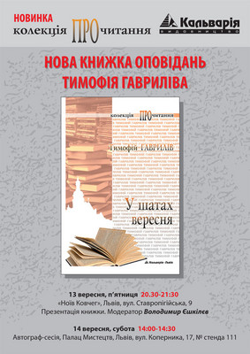 14:00-14:30 Автограф-сесія Тимофія ГАВРИЛІВА «У ШАТАХ ВЕРЕСНЯ» № стенда 111