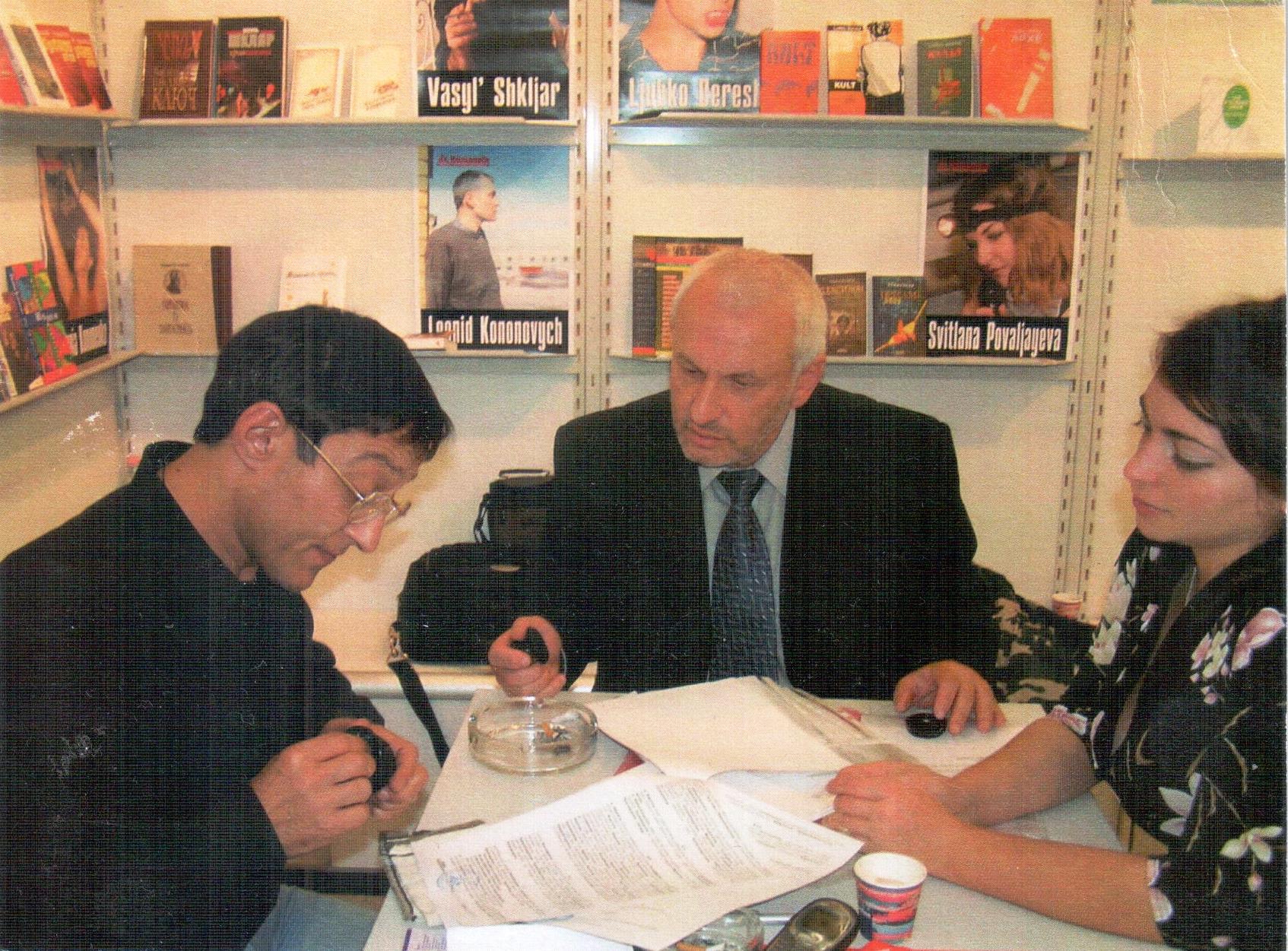 І ще одна цікава деталь: саме на Франкфурті я мав перемовини з російським видавцем, який прийшов на зустріч із перекладачем (рос-укр), вважаючи, що я російською не спілкуватимусь або й не знаю її, адже Кальварія вже була відома як видавництво, що видає книжки лише українською — на фото саме ця зустріч, під час якої були підписані угоди на надання декількох ліцензій росіянам. Так що репутація україномовності жодним чином не розділяє...